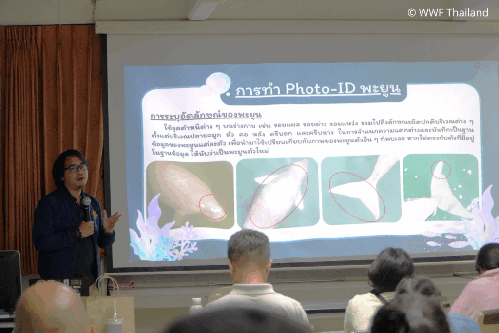 ในวันแรกของการอบรม ผู้เข้าร่วมได้เรียนรู้เกี่ยวกับนิเวศทางทะเล สถานการณ์ของสัตว์ทะเลหายากในประเทศไทย และบทบาทของนักวิทยาศาสตร์พลเมืองในการสนับสนุนงานอนุรักษ์ พร้อมทั้งศึกษาการใช้โดรนหลายใบพัด (Multirotor Drone) มาตรฐานการสำรวจทางอากาศ เทคนิคการระบุเอกลักษณ์รายตัว (Photo ID) และการจัดการข้อมูลเบื้องต้น เพื่อใช้เป็นเครื่องมือสำหรับงานวิจัยและติดตามทรัพยากรทางทะเลในอนาคต