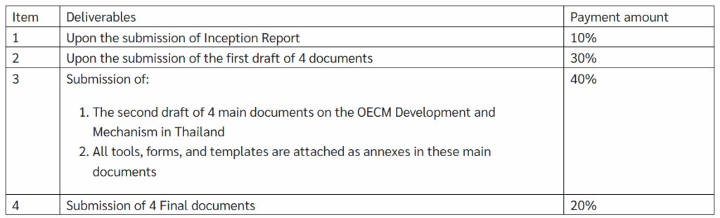 Payments will be made upon the achievement of key deliverables (e.g., Inception Report, draft report, and final report). The payment schedule is as follows.