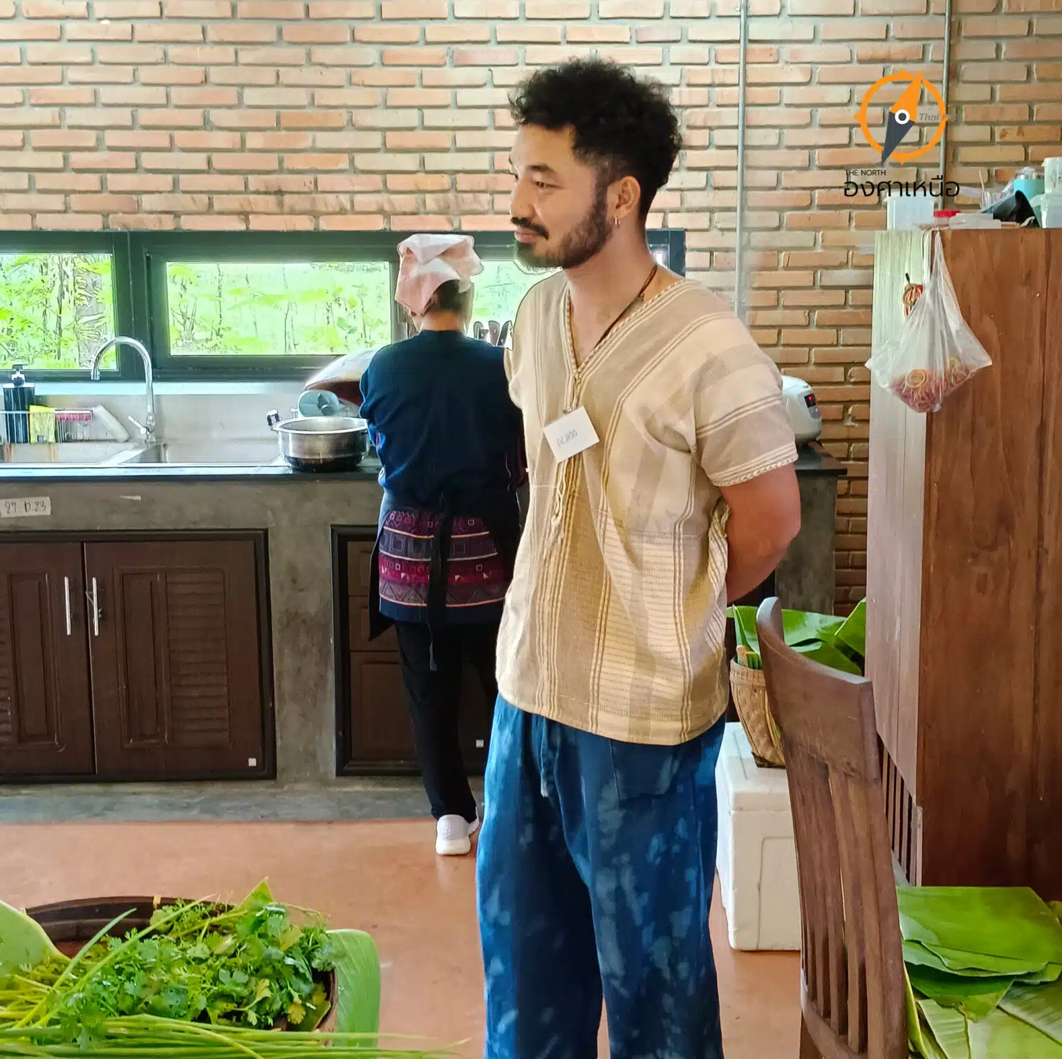 The rainy season brings a vibrant green to the hills of Northern Thailand, where indigenous communities like the Akha and Karen celebrate this abundance through their culinary traditions. At Akha Ama Living Factory in Mae Rim, Chiang Mai, a unique event, “Eat Local, Act Global,” brought together two passionate young chefs: Nam , a youth Akha food enthusiast, and Pachoo, a Karen youth advocate. Both are deeply connected to their roots and committed to showcasing the rich diversity of their local cuisines, passed down through generations. The event featured simple yet exquisite dishes like dried mustard green soup, Akha-style larb, and roasted pork with “wooshi” (วูชิ a chive-like root vegetable), highlighting how local, seasonal ingredients can be transformed into culinary delights.