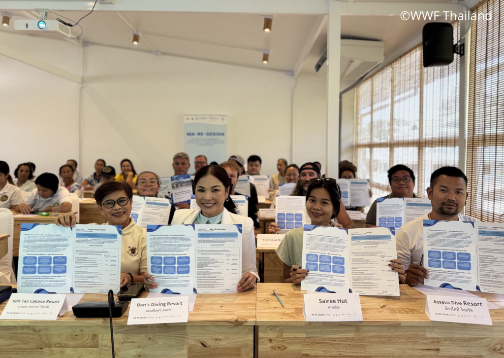 February 13, 2025 – The World Wide Fund for Nature Thailand (WWF), in collaboration with the Deutsche Gesellschaft für Internationale Zusammenarbeit (GIZ) and the United Nations Environment Programme Coordinating Body on the Seas of East Asia (UNEP COBSEA),held a press conference to launch the Plastic Smart City Action Plan in Koh Tao Municipality. This initiative is part of the MA-RE-DESIGN Project, which focuses on reducing single-use plastic (SUP), sustainable design, and recycling plastic packaging to prevent marine litter. This initiative marks a significant collaboration aims to promote the reduction of single-use plastic (SUP) within the tourism sector and local communities while advancing waste management measures tailored to local contexts for both short- and long-term impacts. The project emphasises the development of well-designed strategies that prioritise the advantage of local stakeholders, ensuring the effective reduction of single-use plastic (SUP),improved waste segregation, and the sustainable management of resources.