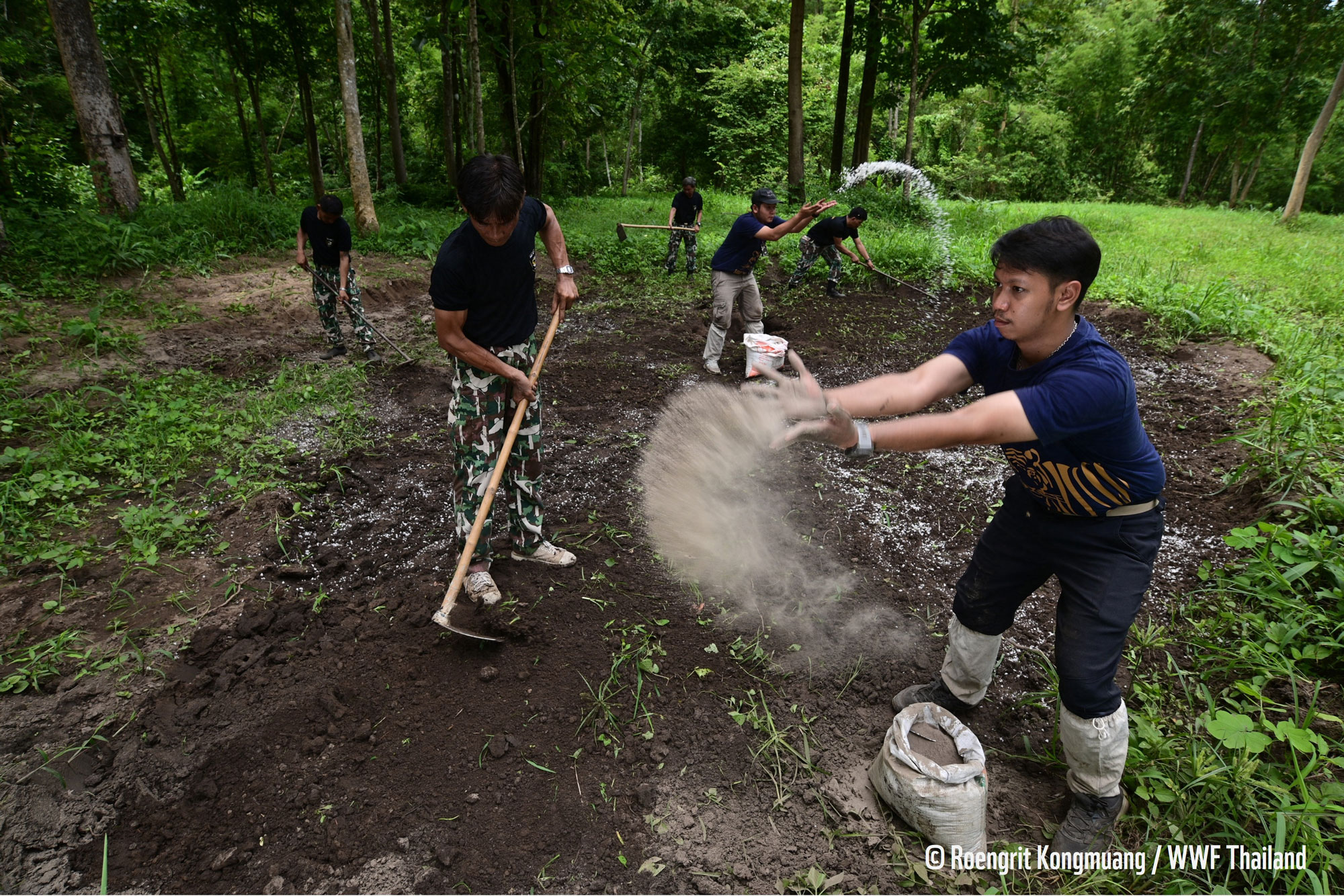 Our Tiger Recovery Program is working to boost sambar population recovery, through (a) Sambar augmentation – introducing sambars from captivity into Mae Wong and Khlong Lan National Parks, and (b) Habitat improvement – constructing salt licks, grasslands, and waterholes that improve habitat conditions for sambars to increase population growth rates, thereby contributing to increased biodiversity and ecosystem functioning.